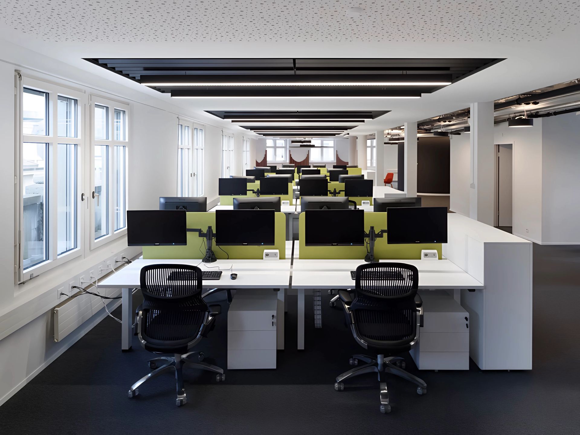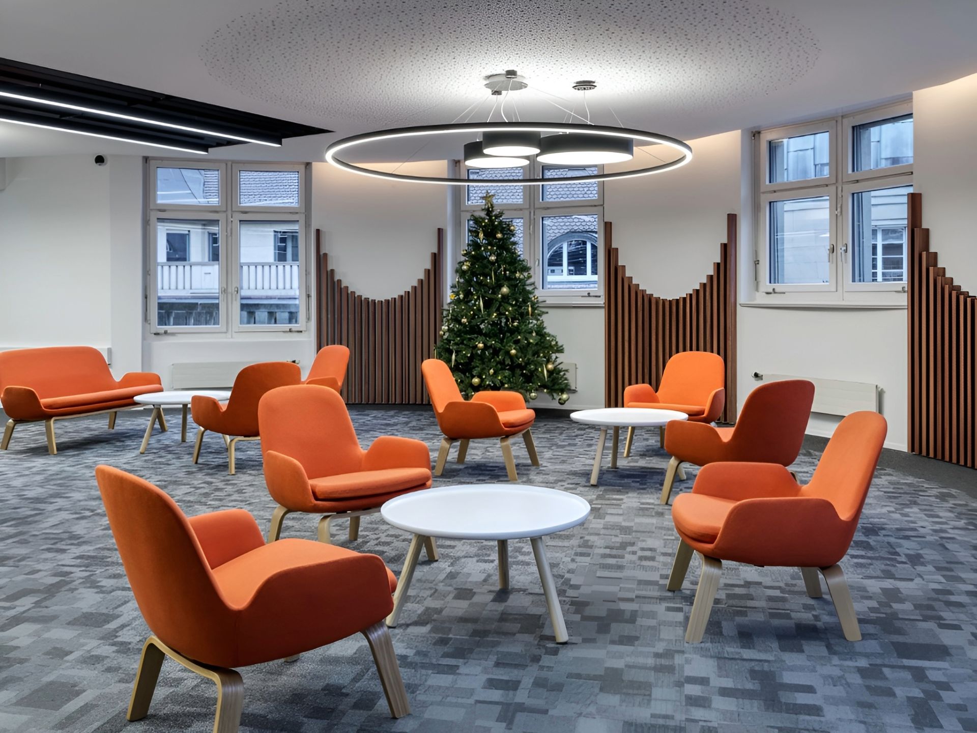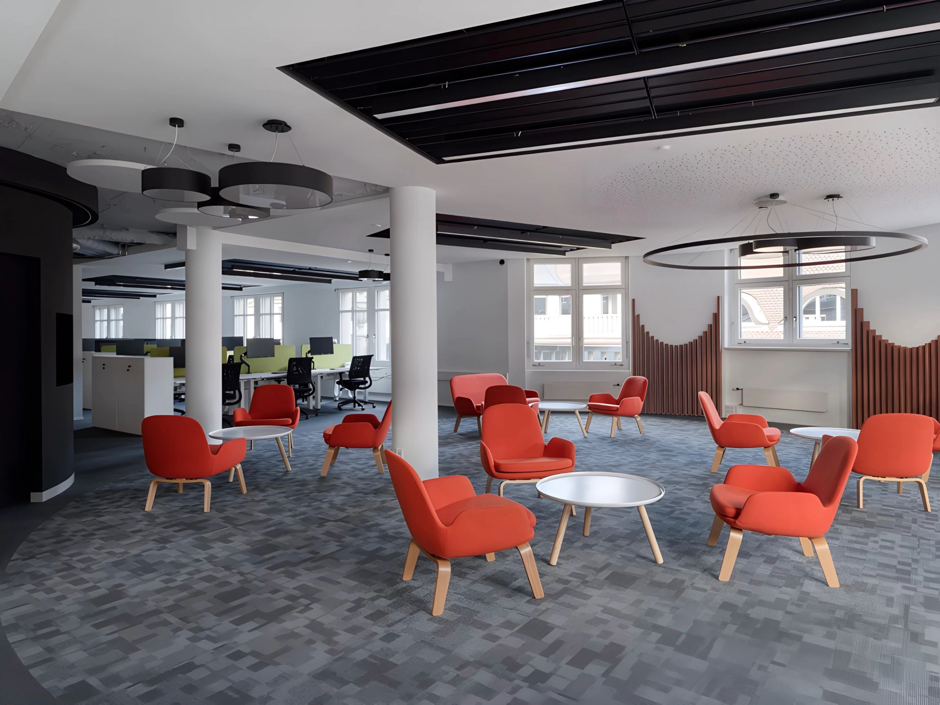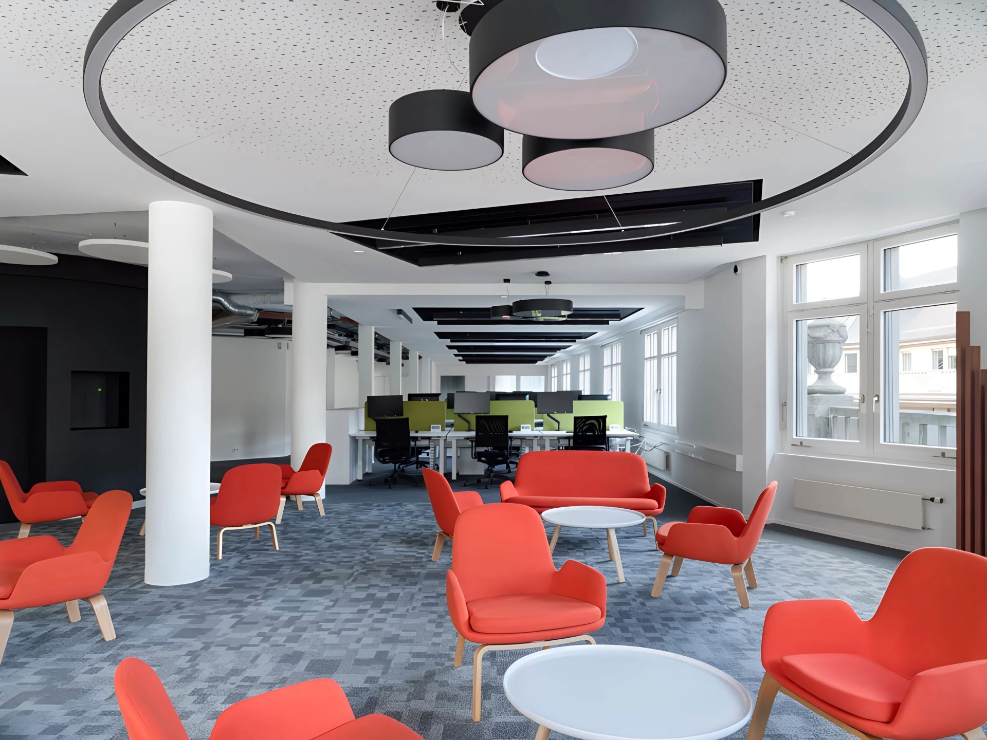Transformation complète des bureaux de Deloitte à Zurich en un espace moderne et fonctionnel.