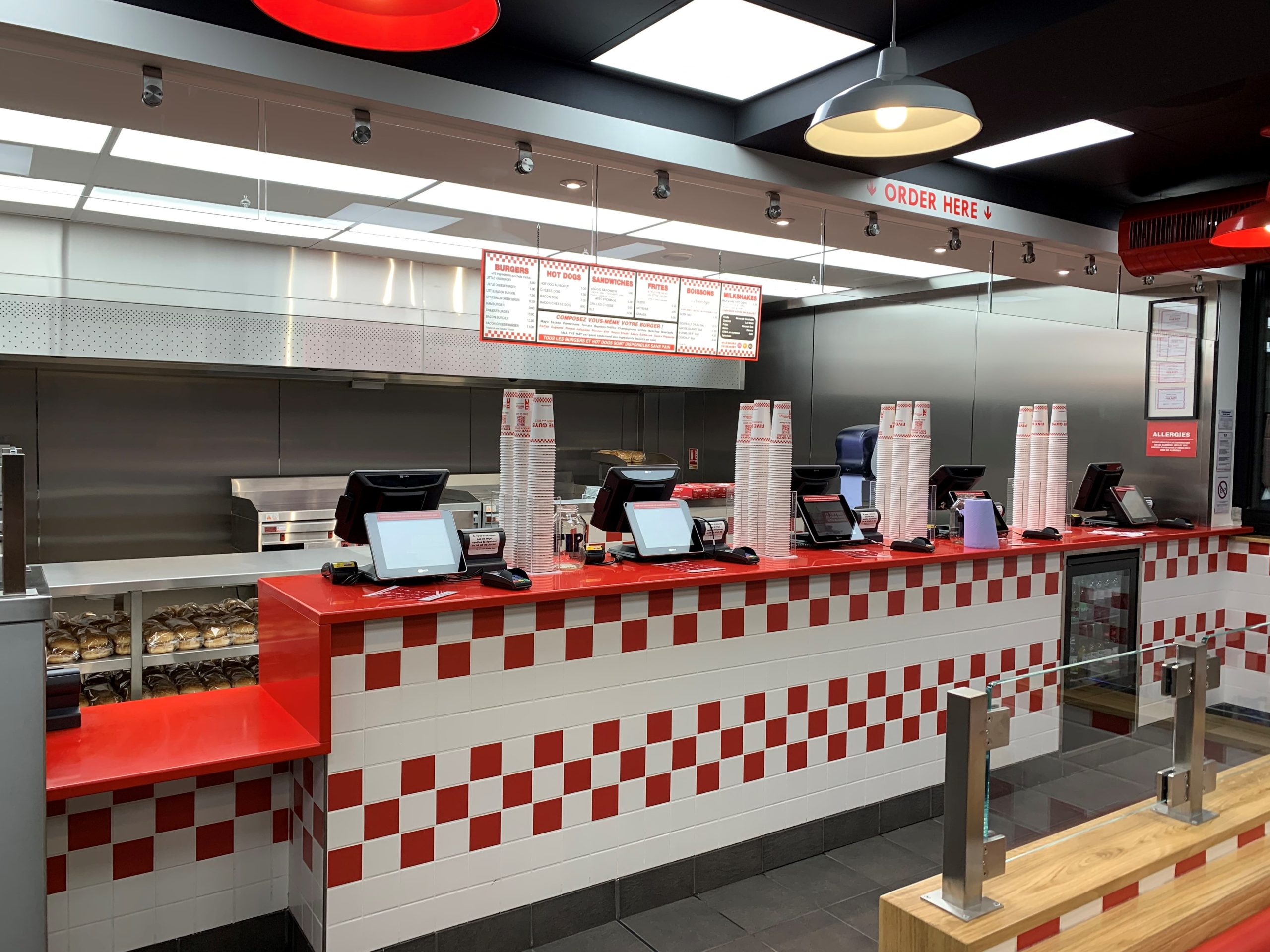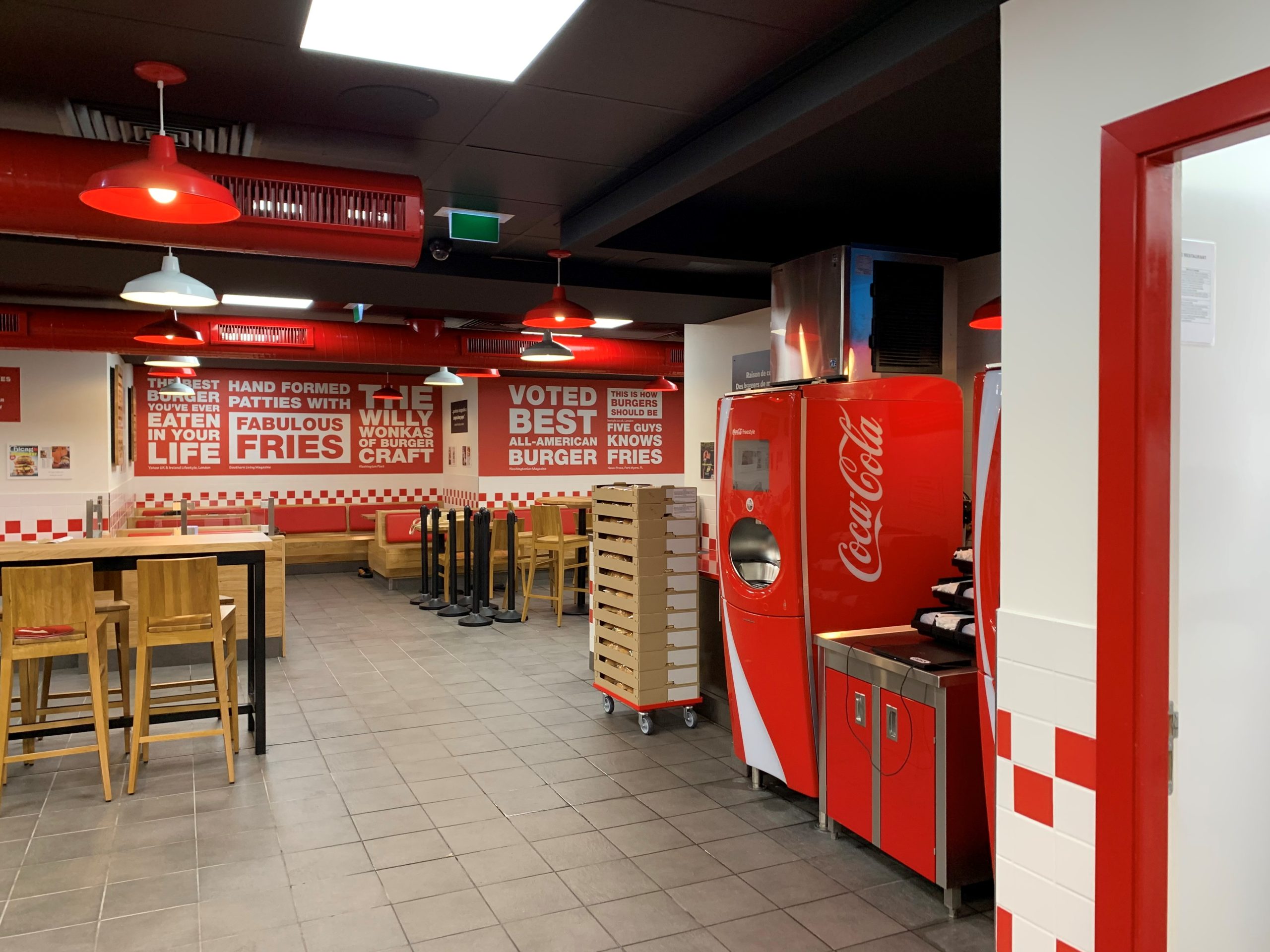 Aménagement clé en main d’un nouveau restaurant Five Guys à Paris, alliant identité de marque et performance opérationnelle.