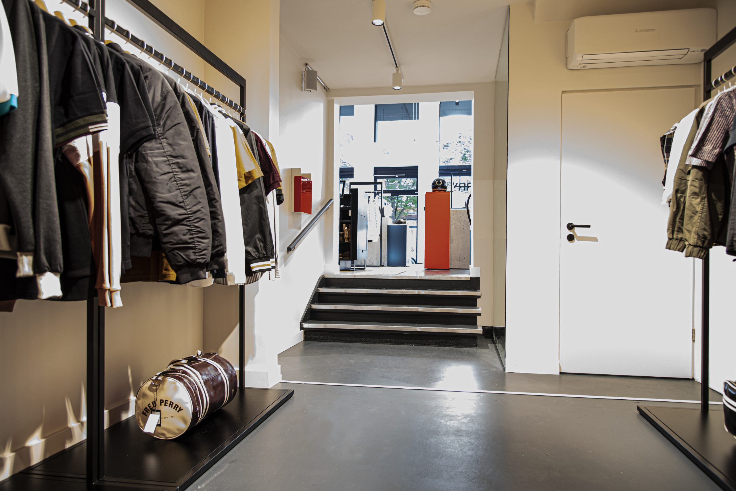 — Décoration et finitions choisies pour respecter l’identité visuelle de Fred Perry