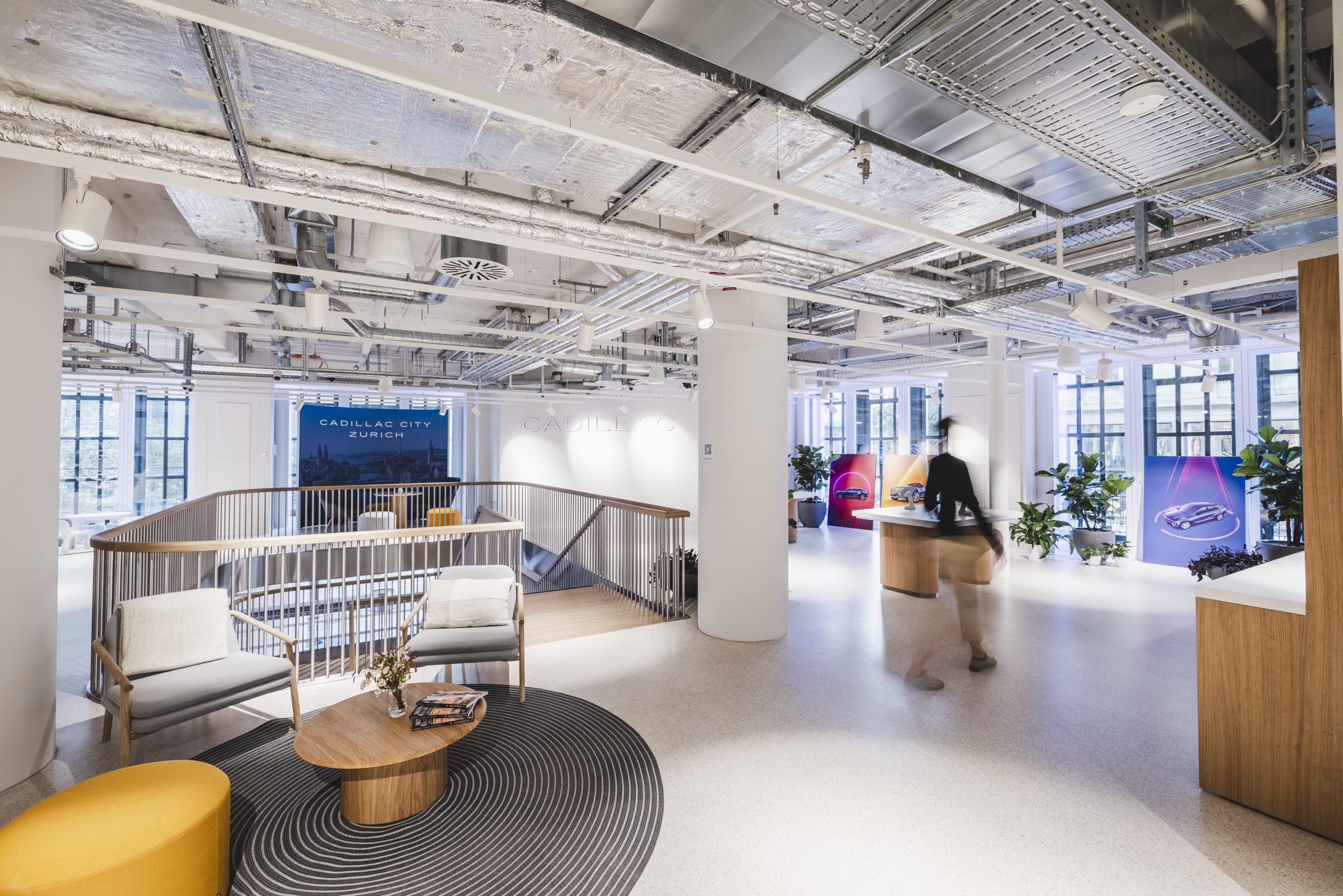 Pour accompagner General Motors, Agilité – a Parella company, a transformé un bâtiment historique de Zurich en un espace novateur, durable et haut de gamme : le Cadillac City.