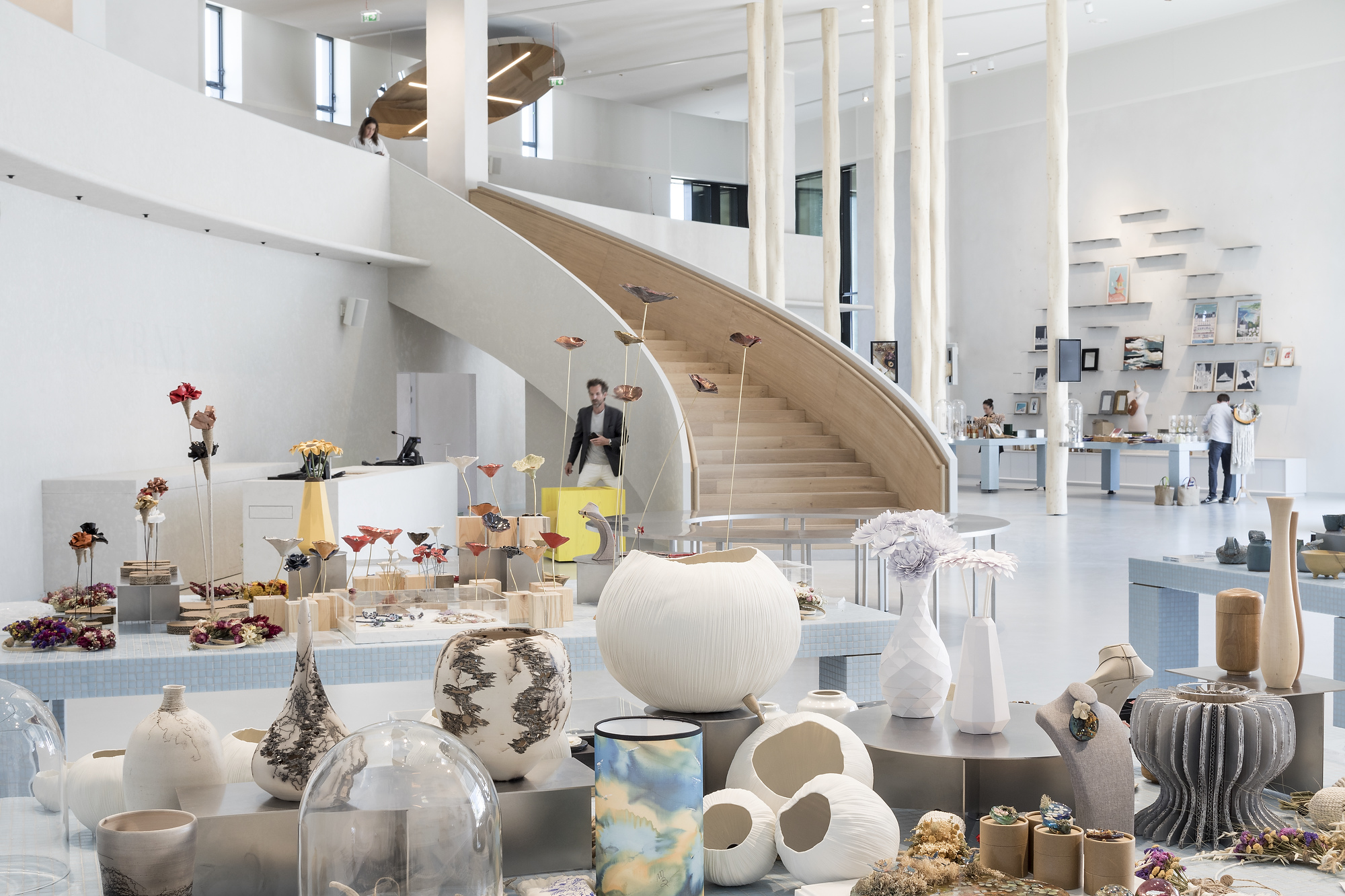 L’espace, composé de matériaux soigneusement choisis, met en avant une œuvre artistique unique, tout en garantissant une réception chaleureuse pour les visiteurs du centre McArthurGlen. La collaboration continue avec l’architecte Mathieu Lehanneur et les artistes locaux a permis de créer un lieu inoubliable et immersif.
