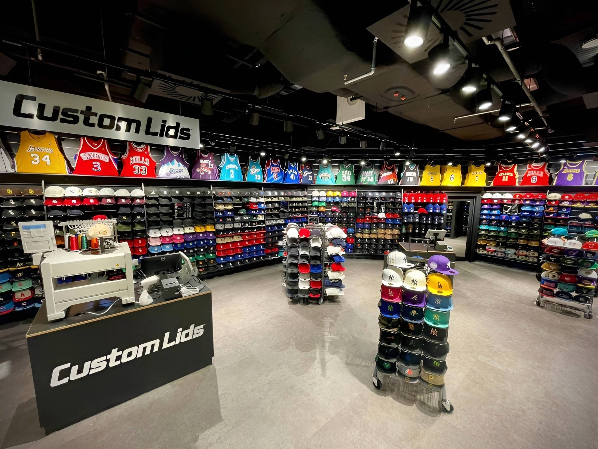 — Installation d’un mur à lames, d’un comptoir d’embroidery, et d’un cash cube pour respecter l’identité visuelle de Lids