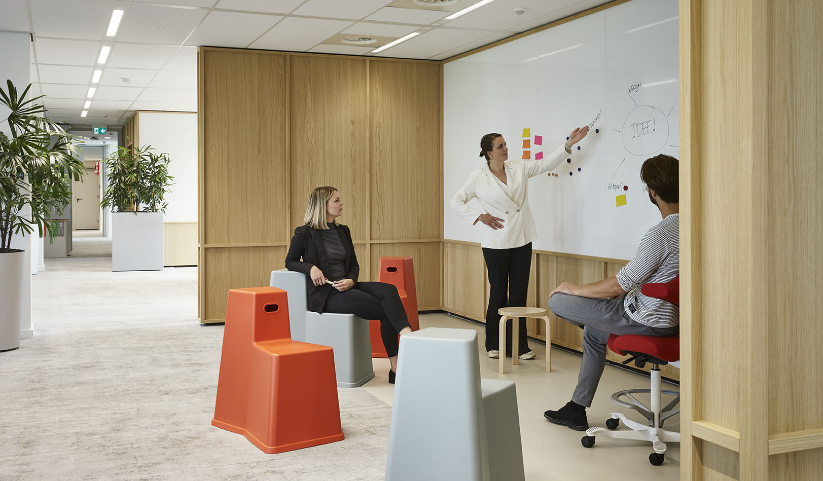Les missions principales étaient la conception et le design des espaces de travail : l’objectif était de rendre la collaboration entre tous les départements de l’entreprise plus efficace, plus facile et plus agréable. Un bureau où chacun se sent à l’aise.