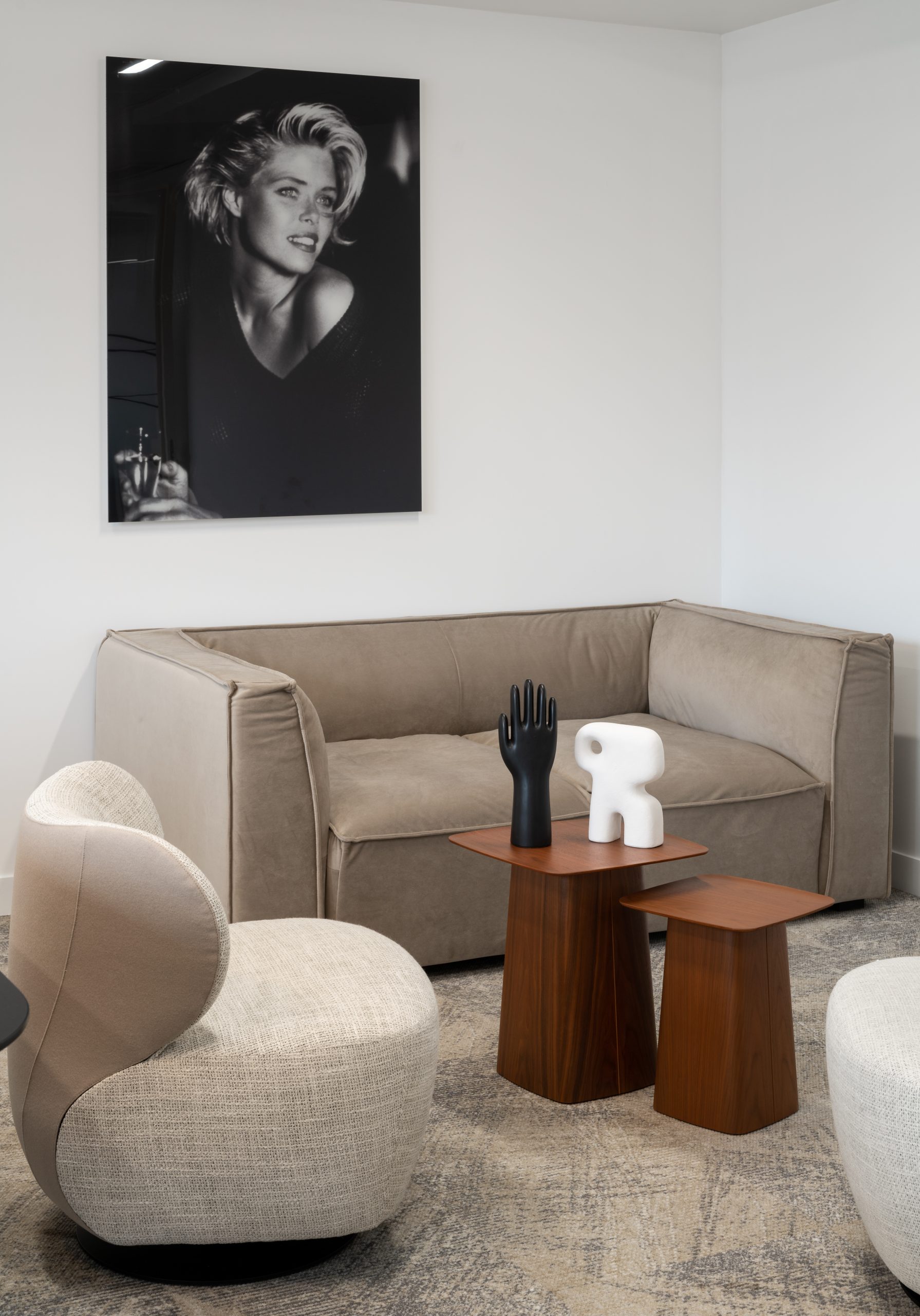 Pour transmettre la passion et les savoir-faire des marques, des espaces raffinés et faciles à vivre s’inspirant du luxe et de l’hôtellerie ont été conçus. Les volumes architecturaux et les matières choisies évoquent les techniques de coiffure iconiques du groupe.
