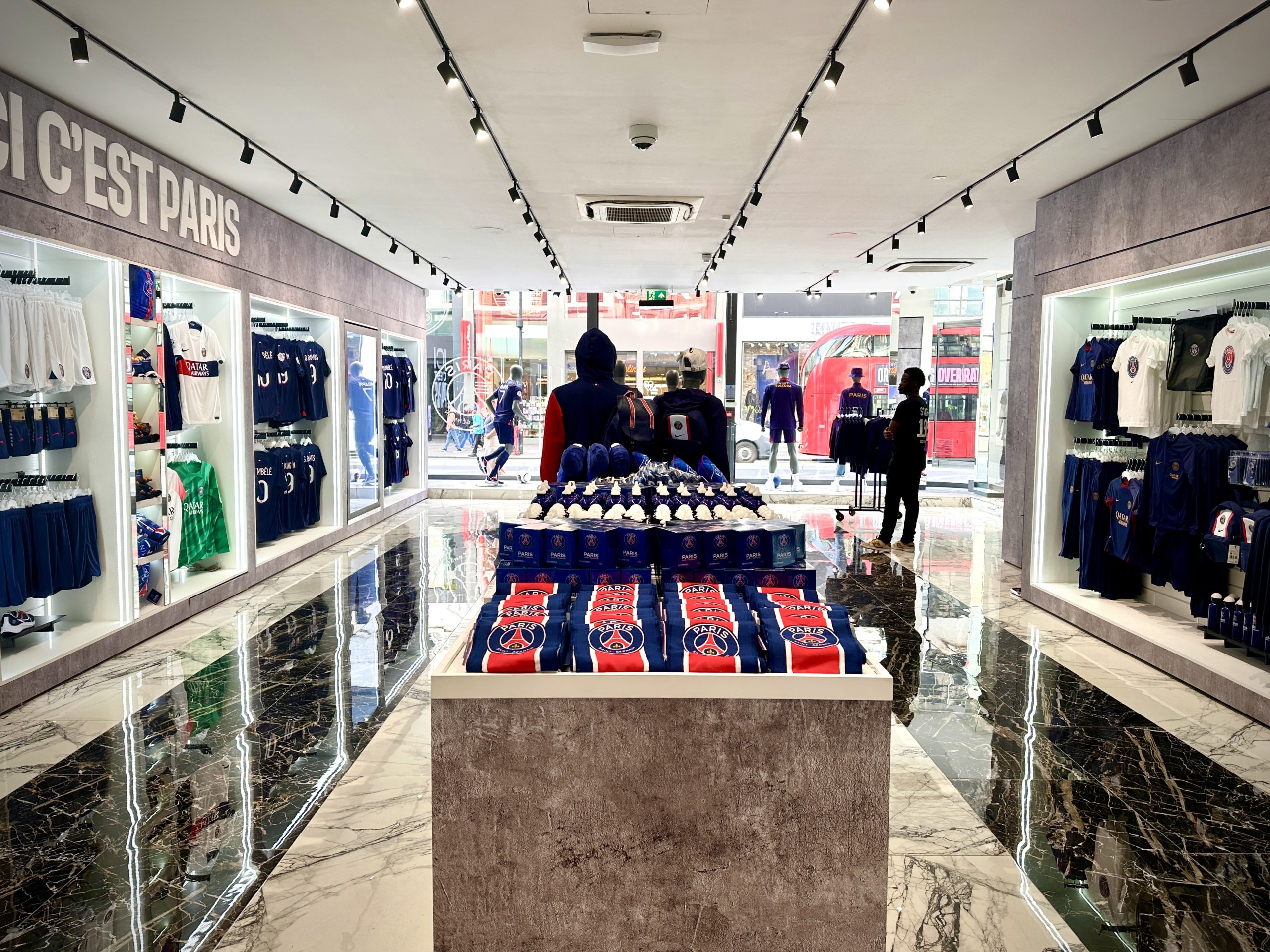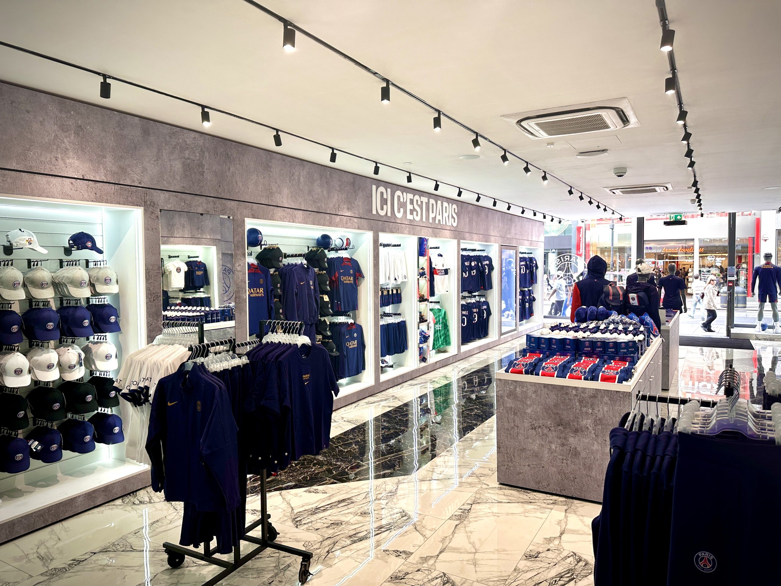 Premier magasin officiel du PSG au Royaume-Uni, situé sur l’emblématique Oxford Street à Londres, en collaboration avec Lids.