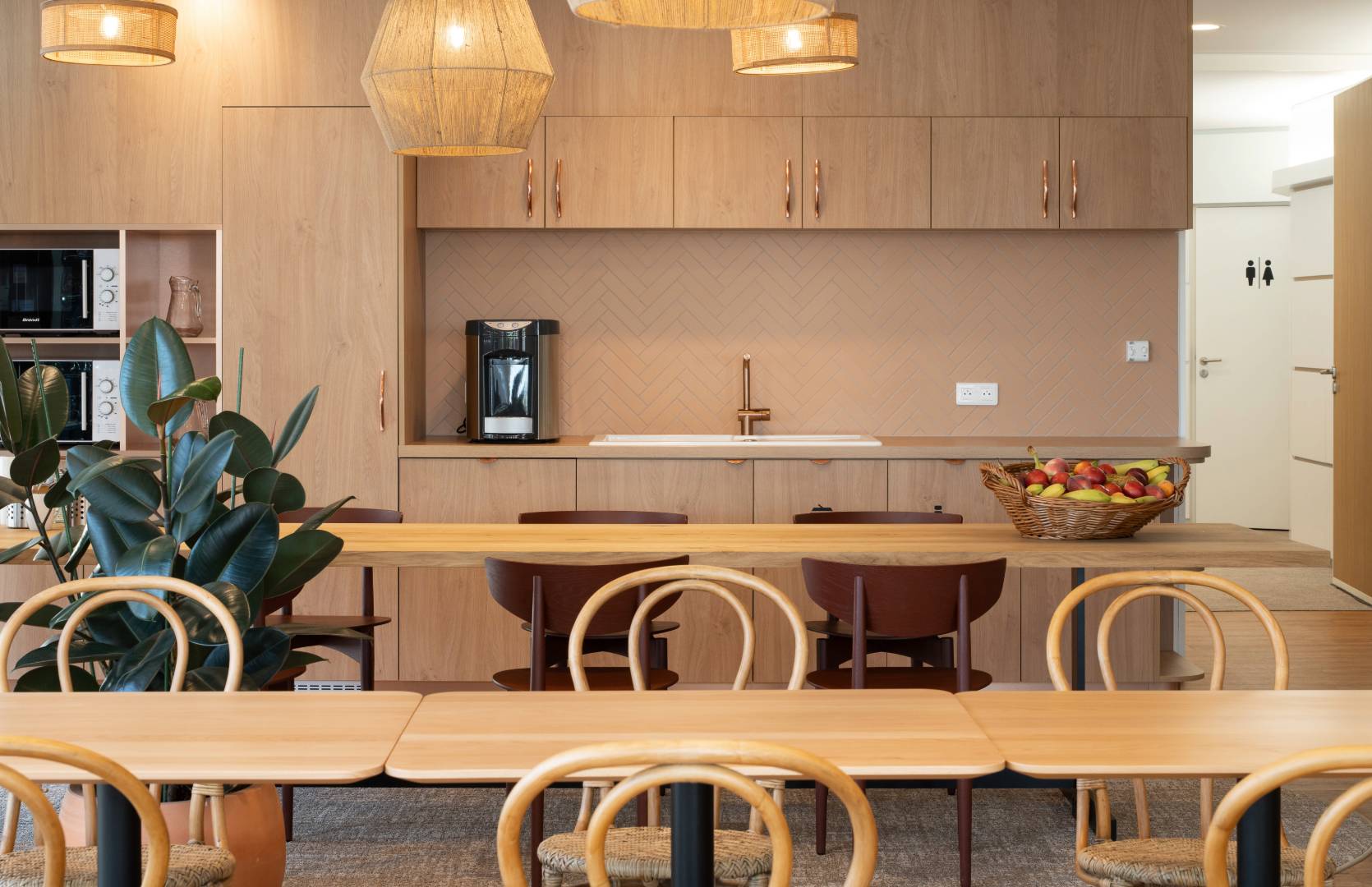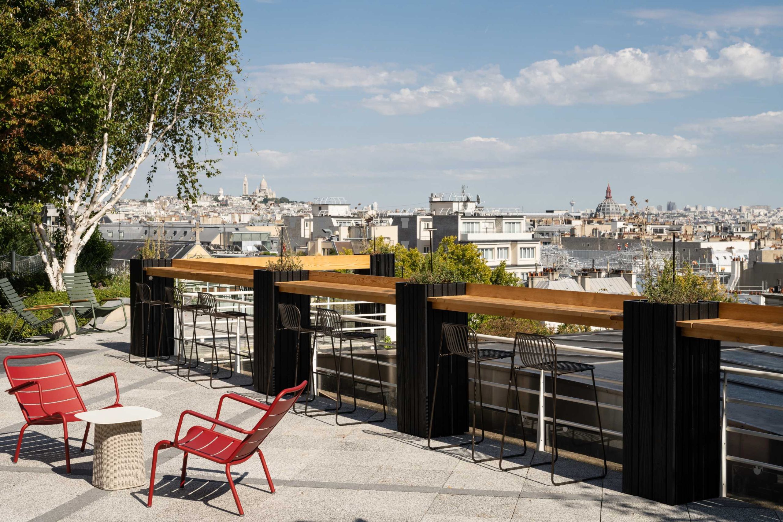 Au total, les 3 500 m² se composent d’un large espace de restauration, d’un bar et d’une terrasse de plus de 400 m2 avec une très belle vue sur les toits de Paris. Une salle de dégustation, dix salles de réunion de typologies variées, de nombreuses bulles à proximité des espaces partagés et un bel accueil apportent la touche finale à ce nouveau siège.