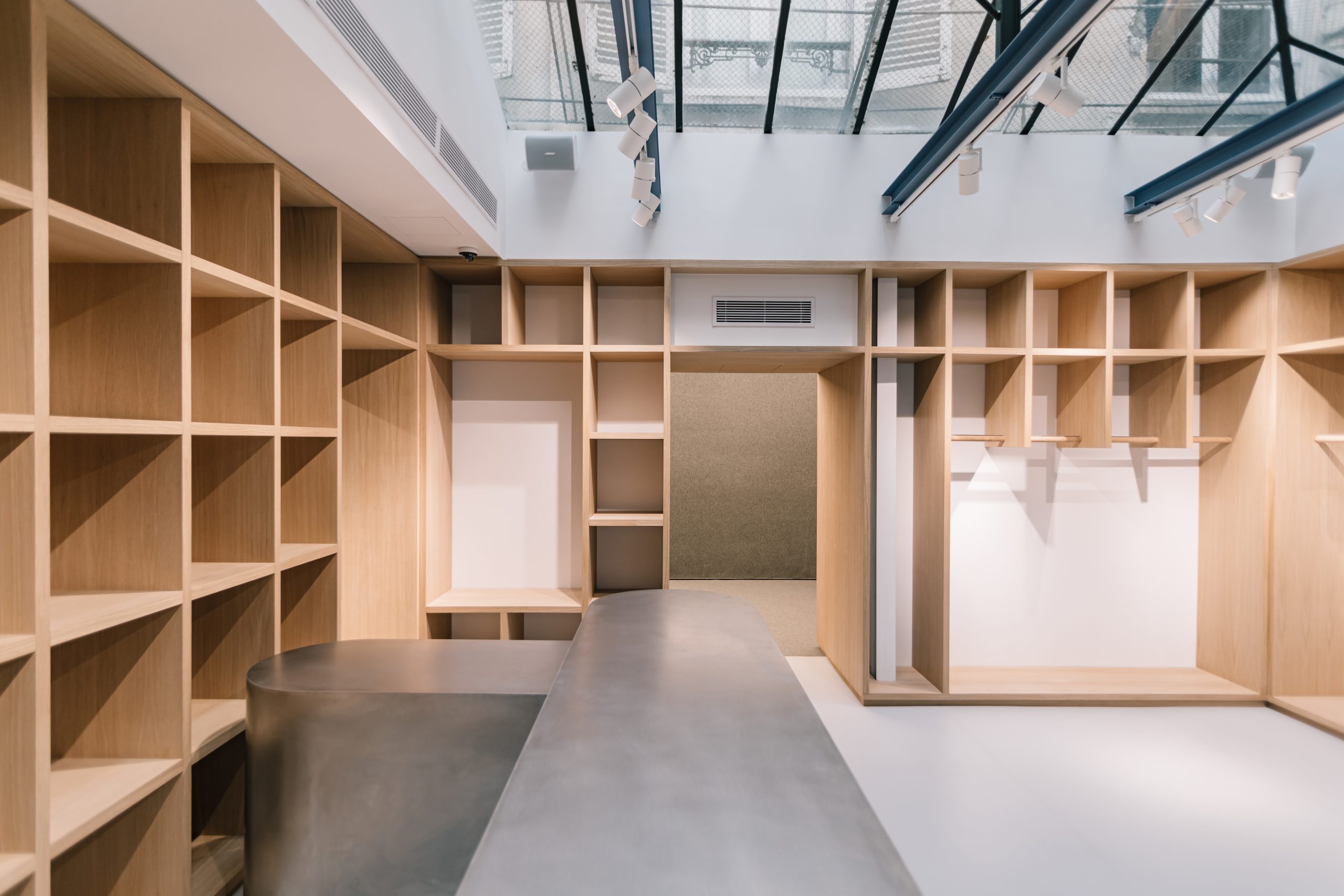 L’objectif : transformer un espace du Marais en une boutique emblématique reflétant l’ADN de Stüssy, en associant matériaux bruts et design minimaliste pour une expérience shopping immersive.